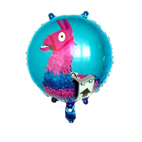 Deze ronde alpaca folieballon is in de kleur blauw en heeft een verbaasde Alpaca erop staan.