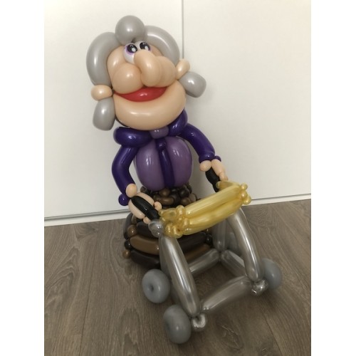 Ballonfiguur Viering Verjaardag Sarah in paarse tinten met rollator