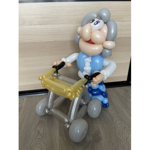 Ballonfiguur Viering Verjaardag Sarah in blauwe tinten met rollator