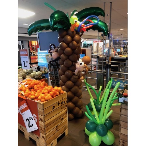 Deze ballonpilaar heeft een aantal weken gestaan bij de Albert Heijn in Asten als thema Jungle.