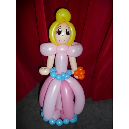 Zet haar op een ballonbloem en ze staat heel erg mooi te schijnen als tafeldecoratie.