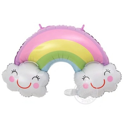 Folieballon Lucht en heelal Regenboog zachte kleuren met wolkjes (90 cm)