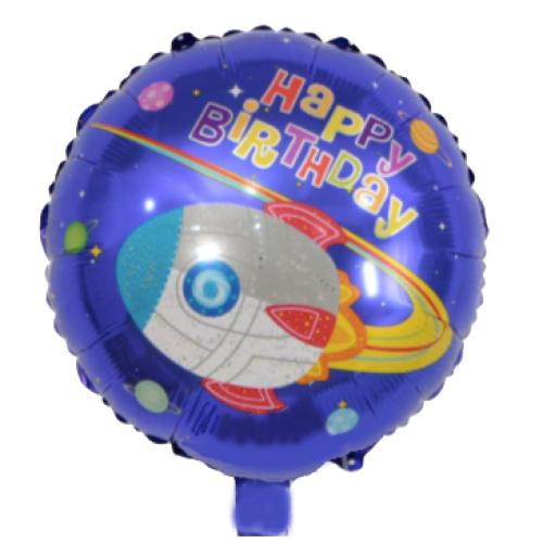 Deze Happy Birthday ruimtevaart folieballon heeft een raket als afbeelding.