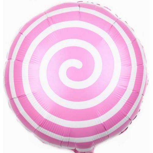Deze folieballon lijkt op een lolly als je er een stokje onder zet.