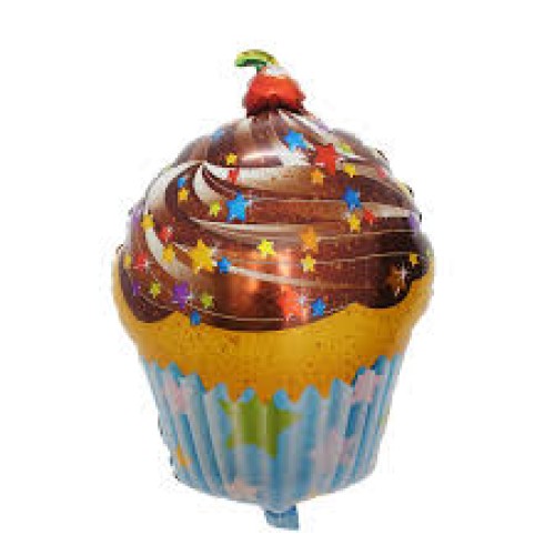 Een grote gezellige cupcake in de kleur chocolade met heel veel sterretjes er op.