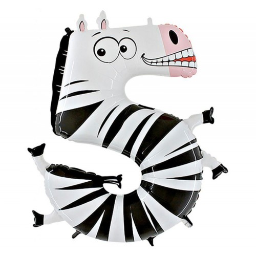 Folieballon dier cijfer 5 (Zebra) 40cm