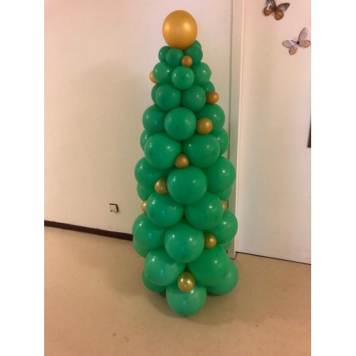 Ballonpilaar Viering Kerstboom met gouden kerstballen (175 cm)