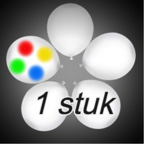 Deze set bevat 1 witte latex ballon met daarbij 1x kleuren LED lampje wat in de ballon gedaan kan worden.