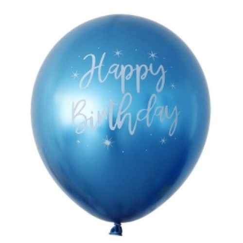 Latex ballon Happy Birthday chrome blauw (30 cm)