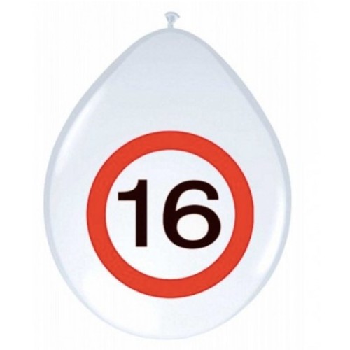 Latex ballon Leeftijd 16 jaar verkeersbord (30 cm)