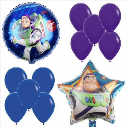 Deze party ballonnen set van Buzz Lightyear komt letterlijk uit de lucht vallen.