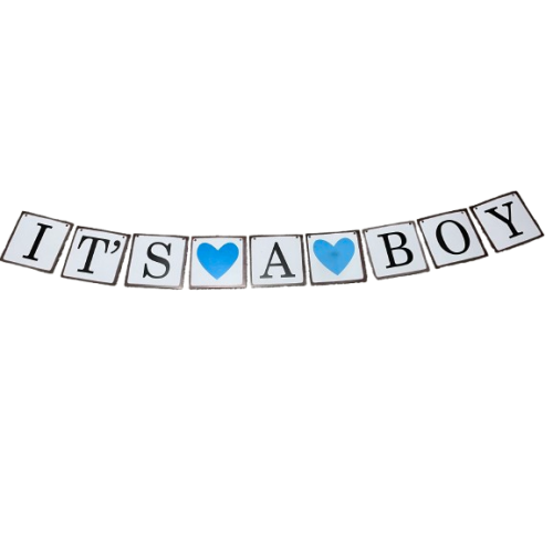 Een vlaggenlijn met It's a boy met mooie blauwe hartjes.