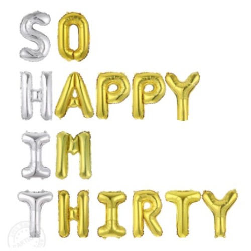 Folieballon Viering Verjaardag Leeftijd - 30 jaar So Happy I'm Thirty zilver goud